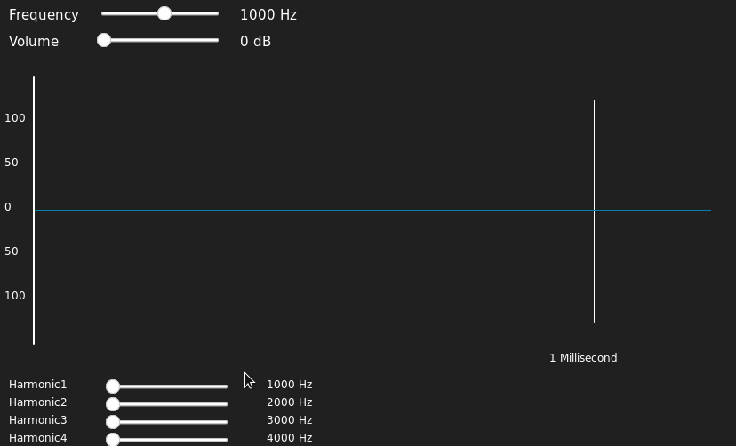 I created some small web application to assist students studying sound technology with the visualisation of waveforms. The applications have been extended to include some examples of synthesis and wave summation.